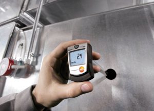 Testo 405 thermal anemometer is a must-have. The thermal anemometer features a permanently mounted telescope and enables you to measure air flow, volumetric flow and air temperature. The measuring range for flow is between 0 to 10 m/s, volumetric flows are calculated up to 99,990 m3/h.